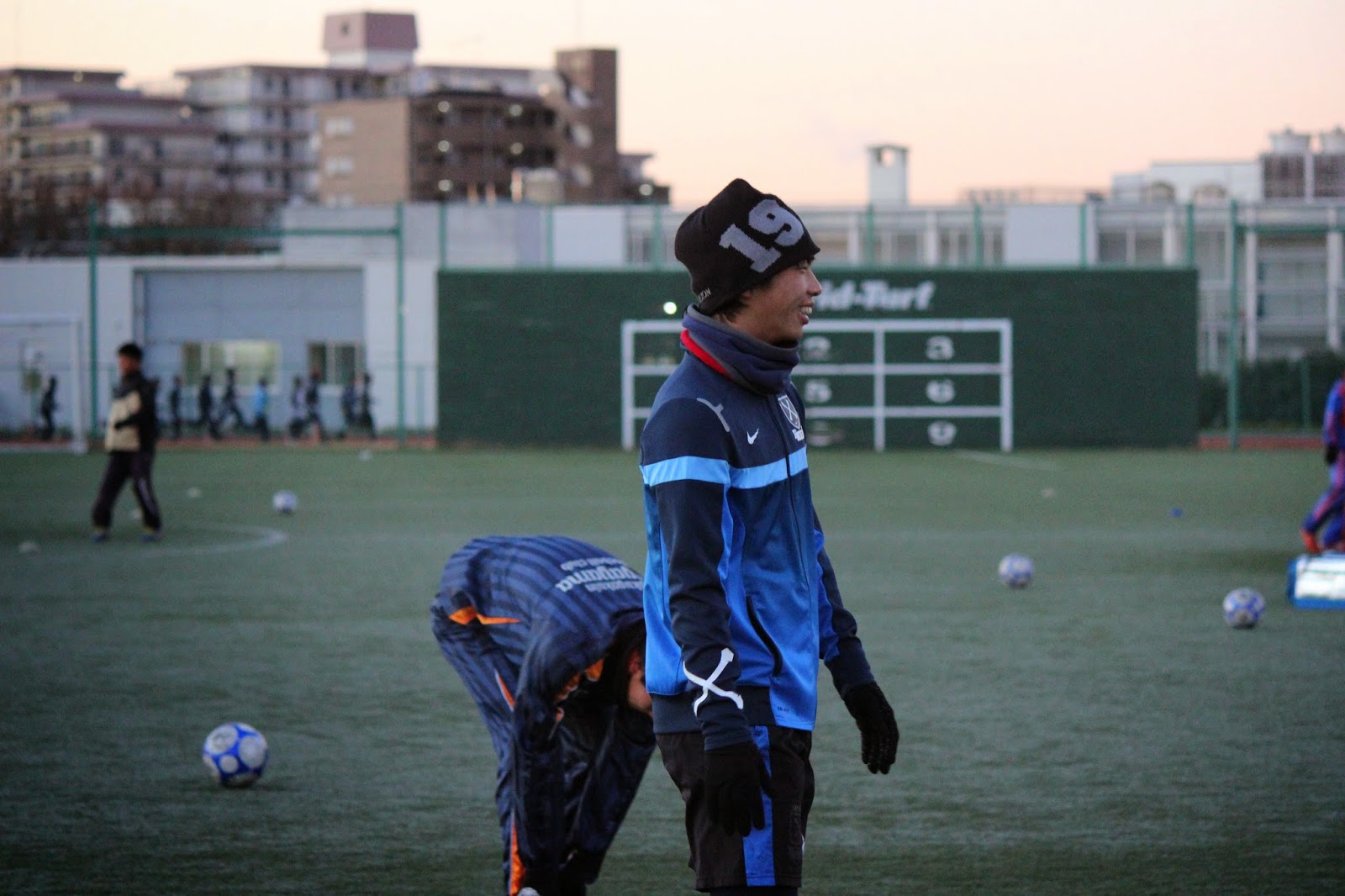 大好きな宮本トレーナーと一緒に、4年で集合です! 左上から、土師、村井、田中、矢島、石原、宮本トレーナー、橋本、 古澤、奥田、石谷、村上 |